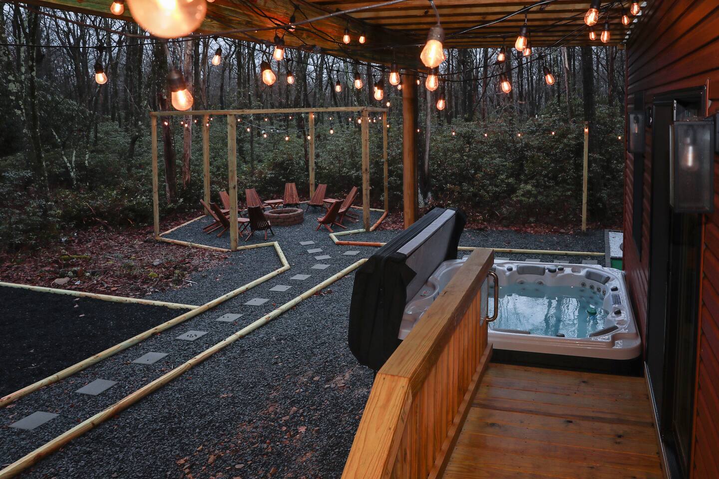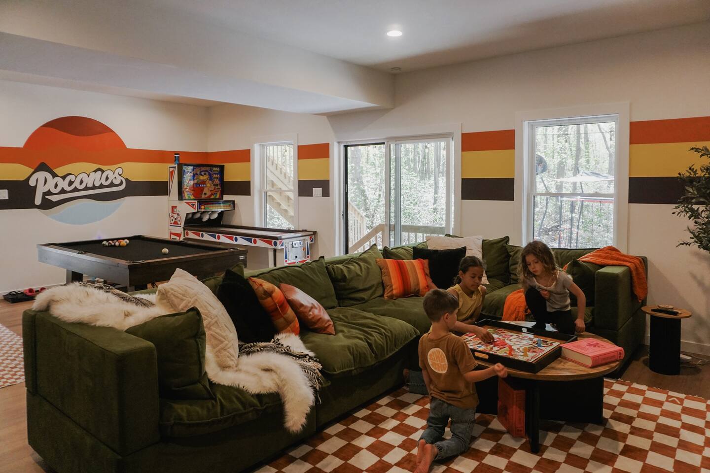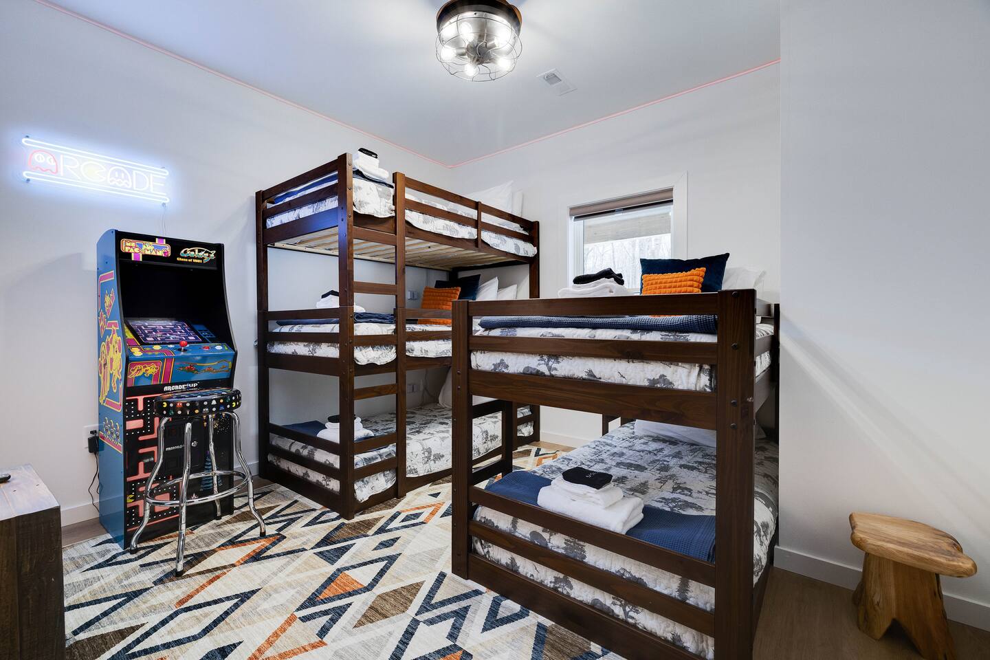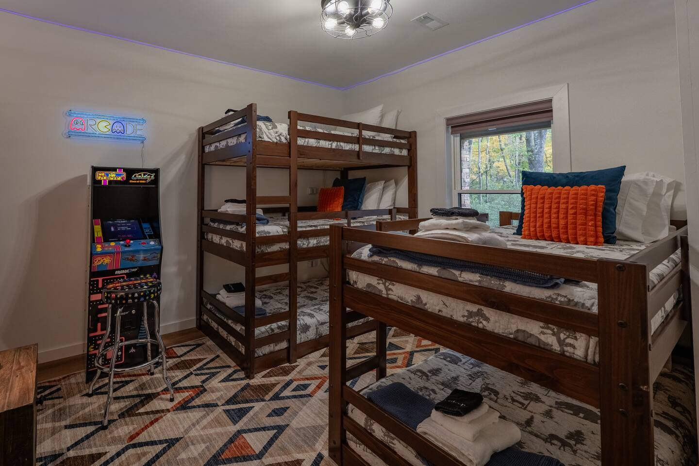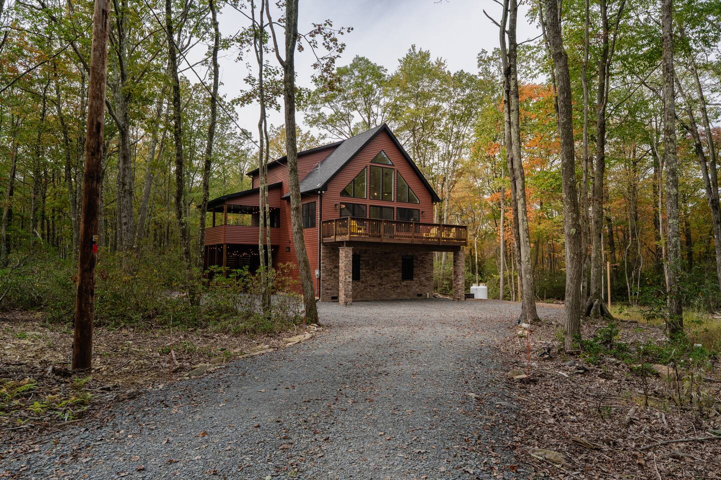 Kiley’s Review ★ ★ ★ ★ ★ August 2025 This house is exactly as described and was perfect for our multi-family vacation. Our family of 14 (8 adults, 5 kids and one dog) fit perfectly in this home, which is thoughtfully set up to host large groups of various ages. Katie was marvelous to coordinate with, and we greatly appreciated how helpful and responsive she was. The kids and adults enjoyed the amenities and the toddler loved seeing the deer every morning from the deck. Guests' Favorite Amenities! ✔ Hot Tub directly off the Deck ✔ 3 Hole Mini Golf ✔ Fire Pit with Seating for 10 for group S'mores roasting ✔ Propane Fireplace on the Deck ✔ Outdoor Bowling ✔ Playset American Ninja ropes course ✔ Pool Table ✔ Nintendo Switch ✔ Vintage Shuffle Board Bowling Arcade ✔ Arcade Game with 12 classic games including Ms. PAC-MAN ✔ Vintage Board Games ✔ Music Loft with Keyboard and Guitars ✔ Brand New 3 Story Modern Mountain Chalet ✔ Soaring Vaulted Ceilings with a Secluded Wooded View ✔ Chef's Kitchen ✔ Master Suite with Deck and Sunset Views ✔ Covered Grilling and Dining Deck for Entertaining ✔ 4 Bedrooms with King Beds (3 Ensuite) ✔ 1 Bunkroom with 1 double and 1 triple bunk ✔ Ceiling Fan in each Bedroom ✔ Roku smart TV's in every bedroom ✔ 86 inch Roku TV in the Game Room ✔ Pack n Play ✔ Controllable Central HVAC Inside, the home is designed for both comfort and entertainment for all ages. Bedrooms & Bathrooms • Each floor features a master ensuite, and every bathroom is accessible from both a bedroom and a common area—perfect for privacy and flexibility. • The first-floor bathroom includes a tub/shower, while the second and third floors have walk-in showers. Sleeping Arrangements • The first floor has a bunk room with a double and triple bunk, great for kids or groups. • The remaining four bedrooms each have a king bed for a restful night's sleep. Kitchen & Living Spaces • The kitchen and main master suite are located on the second floor, with an open-concept living and dining area that leads to a spacious front deck. Outdoor Living • Enjoy the covered deck just off the kitchen, featuring two dining tables with bench seating and a propane grill—perfect for outdoor meals, rain or shine. • The second-floor deck spans the front and rear of the house, offering another great space to take in the surroundings. • The main entrance welcomes you with a ski lift bench, a fun photo op spot! Firewood is also stocked here for your convenience. Entertainment & Leisure • Private hot tub for ultimate relaxation • Fire pit for cozy nights under the stars • Three-hole mini golf • Outdoor bowling • Playset for the little ones This home is designed for gathering, unwinding, and making memories. We can’t wait to host you! ____________________________________ Outdoor Adventures & Activities • Pocono Whitewater - 8 min - Exciting rafting, kayaking, and biking through the scenic Lehigh Gorge. • Lehigh Gorge Trail - 19 min - Rent a bike and enjoy a scenic 25-mile ride along the Lehigh River. • Pocono Outdoor Adventure Tours - 21 min - UTV rides through scenic mountain trails, ages 5+ can ride! • Delaware Water Gap - 48 min - Stunning waterfalls, river paddling, and Mt. Tammany hikes. ____________________________________ Skiing & Snowboarding Resorts • Jack Frost & Big Boulder Ski Resort - 19 min - Scenic skiing, snowboarding, and tubing by day and night. • Camelback Resort - 39 min - Year-round adventure with skiing, waterparks, ziplining, and more! • Blue Mountain Ski Resort - 39 min - Home to Pennsylvania’s highest vertical drop, plus hiking & biking. ____________________________________ Scenic & Nature Parks • Austin T. Blakeslee Natural Area - 23 min - Scenic trails, serene waterfalls, and peaceful fishing spots. • Hickory Run State Park - 21 min - Home to breathtaking waterfalls and the world-famous Boulder Field. • Bear Mountain Butterfly Sanctuary - 9 min - Walk among free-flying butterflies and interactive exhibits. ____________________________________ Historic & Sightseeing Attractions • Historic Jim Thorpe - 19 min - Quaint streets, boutique shops, and 19th-century architecture. • Lehigh Gorge Scenic Railway - 19 min - Breathtaking train rides through cliffs, forests, and mountains. • Jim Thorpe Trolley Co. - 19 min - Dog-friendly guided tours of Jim Thorpe’s rich history and architecture. ____________________________________ Family Fun & Entertainment • Kalahari - 37 min - America’s largest indoor waterpark, plus dining, spa, and entertainment. • Penn’s Peak - 15 min - Live concerts, dining, and stunning panoramic mountain views. • Skirmish Paintball - 18 min - One of the world’s largest paintball fields with 750+ acres and 50+ themed maps. ____________________________________ Horseback Riding • Deer Path Riding - 18 min - Peaceful, guided horseback rides for ages 7+, no experience needed. • Mountain Creek Riding Stable - 43 min - Scenic guided trail rides for all skill levels. ____________________________________ Food & Drink • Pocono Organics Café - 20 min - Farm-to-table café offering fresh, organic meals and smoothies. • Boulder View Tavern - 17 min - Delicious food, lakefront views, and a dog-friendly patio. • Reilly’s Produce - 9 min - Farm-fresh fruits, vegetables, and local goods straight from the Poconos. ____________________________________ Motorsports & Racing • Pocono Raceway - 21 min - NASCAR races, thrilling events, and drive-the-track experiences. ____________________________________ Perfect adventures for every season—book your stay now!