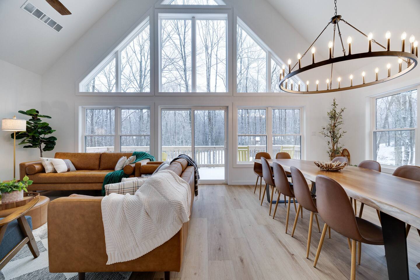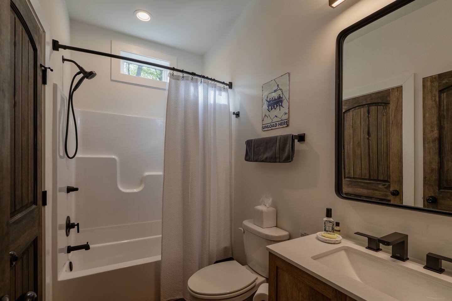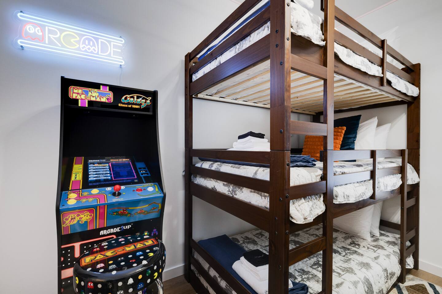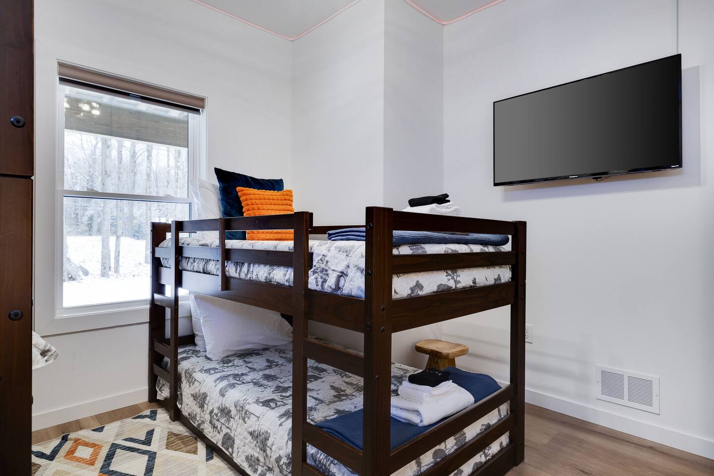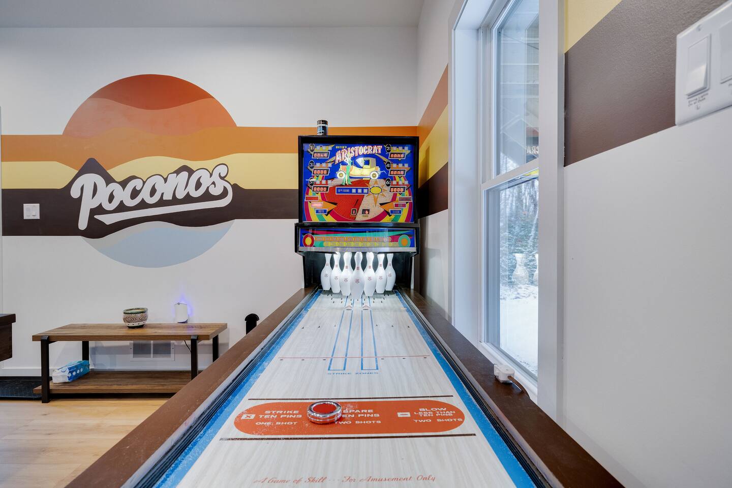 Kiley’s Review ★ ★ ★ ★ ★ August 2025 This house is exactly as described and was perfect for our multi-family vacation. Our family of 14 (8 adults, 5 kids and one dog) fit perfectly in this home, which is thoughtfully set up to host large groups of various ages. Katie was marvelous to coordinate with, and we greatly appreciated how helpful and responsive she was. The kids and adults enjoyed the amenities and the toddler loved seeing the deer every morning from the deck. Guests' Favorite Amenities! ✔ Hot Tub directly off the Deck ✔ 3 Hole Mini Golf ✔ Fire Pit with Seating for 10 for group S'mores roasting ✔ Propane Fireplace on the Deck ✔ Outdoor Bowling ✔ Playset American Ninja ropes course ✔ Pool Table ✔ Nintendo Switch ✔ Vintage Shuffle Board Bowling Arcade ✔ Arcade Game with 12 classic games including Ms. PAC-MAN ✔ Vintage Board Games ✔ Music Loft with Keyboard and Guitars ✔ Brand New 3 Story Modern Mountain Chalet ✔ Soaring Vaulted Ceilings with a Secluded Wooded View ✔ Chef's Kitchen ✔ Master Suite with Deck and Sunset Views ✔ Covered Grilling and Dining Deck for Entertaining ✔ 4 Bedrooms with King Beds (3 Ensuite) ✔ 1 Bunkroom with 1 double and 1 triple bunk ✔ Ceiling Fan in each Bedroom ✔ Roku smart TV's in every bedroom ✔ 86 inch Roku TV in the Game Room ✔ Pack n Play ✔ Controllable Central HVAC Inside, the home is designed for both comfort and entertainment for all ages. Bedrooms & Bathrooms • Each floor features a master ensuite, and every bathroom is accessible from both a bedroom and a common area—perfect for privacy and flexibility. • The first-floor bathroom includes a tub/shower, while the second and third floors have walk-in showers. Sleeping Arrangements • The first floor has a bunk room with a double and triple bunk, great for kids or groups. • The remaining four bedrooms each have a king bed for a restful night's sleep. Kitchen & Living Spaces • The kitchen and main master suite are located on the second floor, with an open-concept living and dining area that leads to a spacious front deck. Outdoor Living • Enjoy the covered deck just off the kitchen, featuring two dining tables with bench seating and a propane grill—perfect for outdoor meals, rain or shine. • The second-floor deck spans the front and rear of the house, offering another great space to take in the surroundings. • The main entrance welcomes you with a ski lift bench, a fun photo op spot! Firewood is also stocked here for your convenience. Entertainment & Leisure • Private hot tub for ultimate relaxation • Fire pit for cozy nights under the stars • Three-hole mini golf • Outdoor bowling • Playset for the little ones This home is designed for gathering, unwinding, and making memories. We can’t wait to host you! ____________________________________ Outdoor Adventures & Activities • Pocono Whitewater - 8 min - Exciting rafting, kayaking, and biking through the scenic Lehigh Gorge. • Lehigh Gorge Trail - 19 min - Rent a bike and enjoy a scenic 25-mile ride along the Lehigh River. • Pocono Outdoor Adventure Tours - 21 min - UTV rides through scenic mountain trails, ages 5+ can ride! • Delaware Water Gap - 48 min - Stunning waterfalls, river paddling, and Mt. Tammany hikes. ____________________________________ Skiing & Snowboarding Resorts • Jack Frost & Big Boulder Ski Resort - 19 min - Scenic skiing, snowboarding, and tubing by day and night. • Camelback Resort - 39 min - Year-round adventure with skiing, waterparks, ziplining, and more! • Blue Mountain Ski Resort - 39 min - Home to Pennsylvania’s highest vertical drop, plus hiking & biking. ____________________________________ Scenic & Nature Parks • Austin T. Blakeslee Natural Area - 23 min - Scenic trails, serene waterfalls, and peaceful fishing spots. • Hickory Run State Park - 21 min - Home to breathtaking waterfalls and the world-famous Boulder Field. • Bear Mountain Butterfly Sanctuary - 9 min - Walk among free-flying butterflies and interactive exhibits. ____________________________________ Historic & Sightseeing Attractions • Historic Jim Thorpe - 19 min - Quaint streets, boutique shops, and 19th-century architecture. • Lehigh Gorge Scenic Railway - 19 min - Breathtaking train rides through cliffs, forests, and mountains. • Jim Thorpe Trolley Co. - 19 min - Dog-friendly guided tours of Jim Thorpe’s rich history and architecture. ____________________________________ Family Fun & Entertainment • Kalahari - 37 min - America’s largest indoor waterpark, plus dining, spa, and entertainment. • Penn’s Peak - 15 min - Live concerts, dining, and stunning panoramic mountain views. • Skirmish Paintball - 18 min - One of the world’s largest paintball fields with 750+ acres and 50+ themed maps. ____________________________________ Horseback Riding • Deer Path Riding - 18 min - Peaceful, guided horseback rides for ages 7+, no experience needed. • Mountain Creek Riding Stable - 43 min - Scenic guided trail rides for all skill levels. ____________________________________ Food & Drink • Pocono Organics Café - 20 min - Farm-to-table café offering fresh, organic meals and smoothies. • Boulder View Tavern - 17 min - Delicious food, lakefront views, and a dog-friendly patio. • Reilly’s Produce - 9 min - Farm-fresh fruits, vegetables, and local goods straight from the Poconos. ____________________________________ Motorsports & Racing • Pocono Raceway - 21 min - NASCAR races, thrilling events, and drive-the-track experiences. ____________________________________ Perfect adventures for every season—book your stay now!