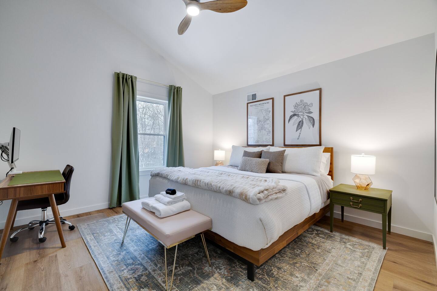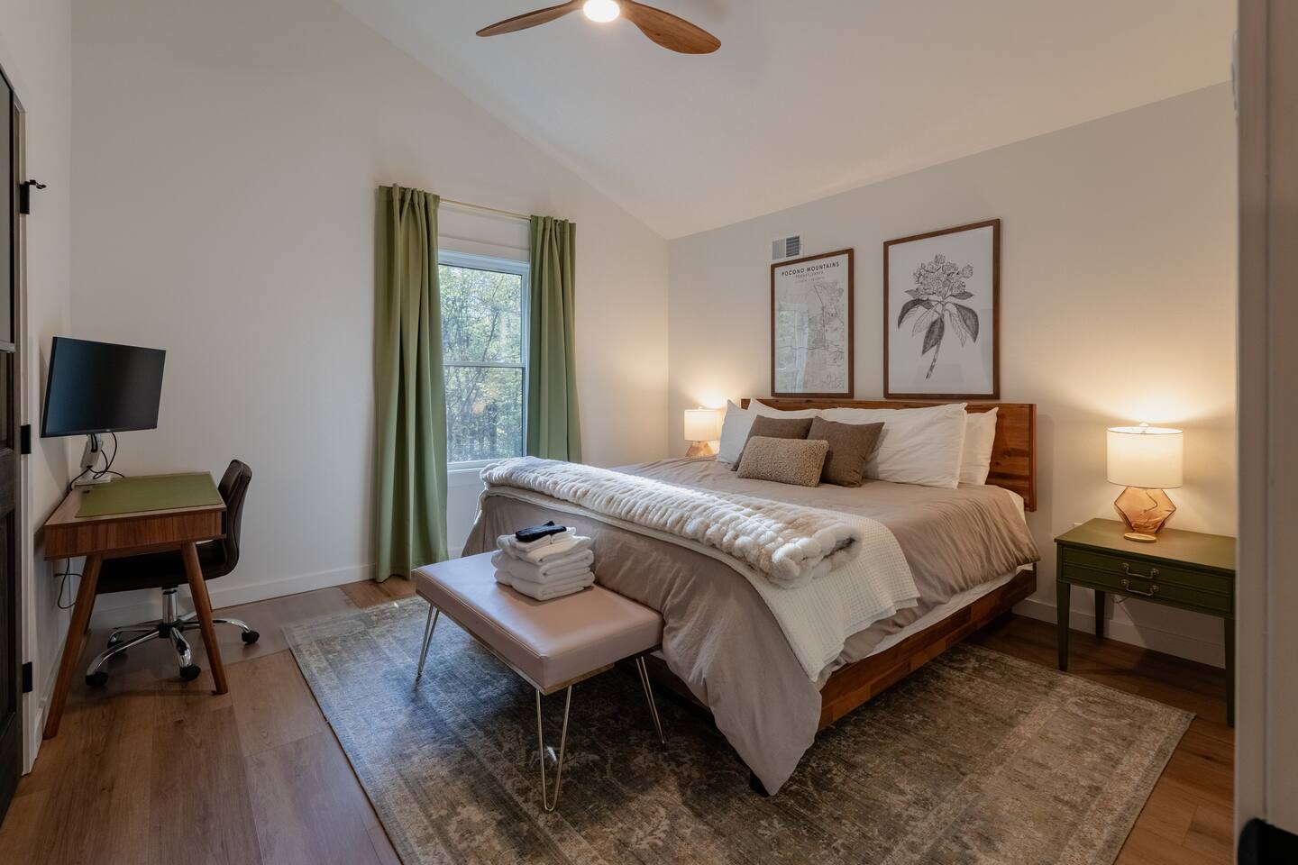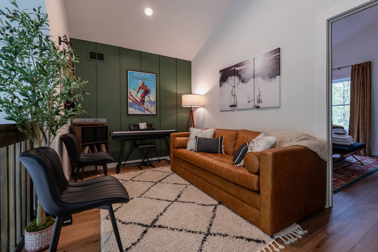 Welcome to Poconoasis! This modern chalet is nestled in the woods of a peaceful lake community, perfect for families and friends. Enjoy skiing, white-water rafting, boating, hiking, swimming, and the nearby historic town of Jim Thorpe, plus shopping and dining. Experience spacious living areas and plenty of seating for everyone to enjoy togetherness. Relax in the hot tub, play in the rec room, or unwind in four king bedrooms. The bunk room is fun and cozy for kids after their adventures.